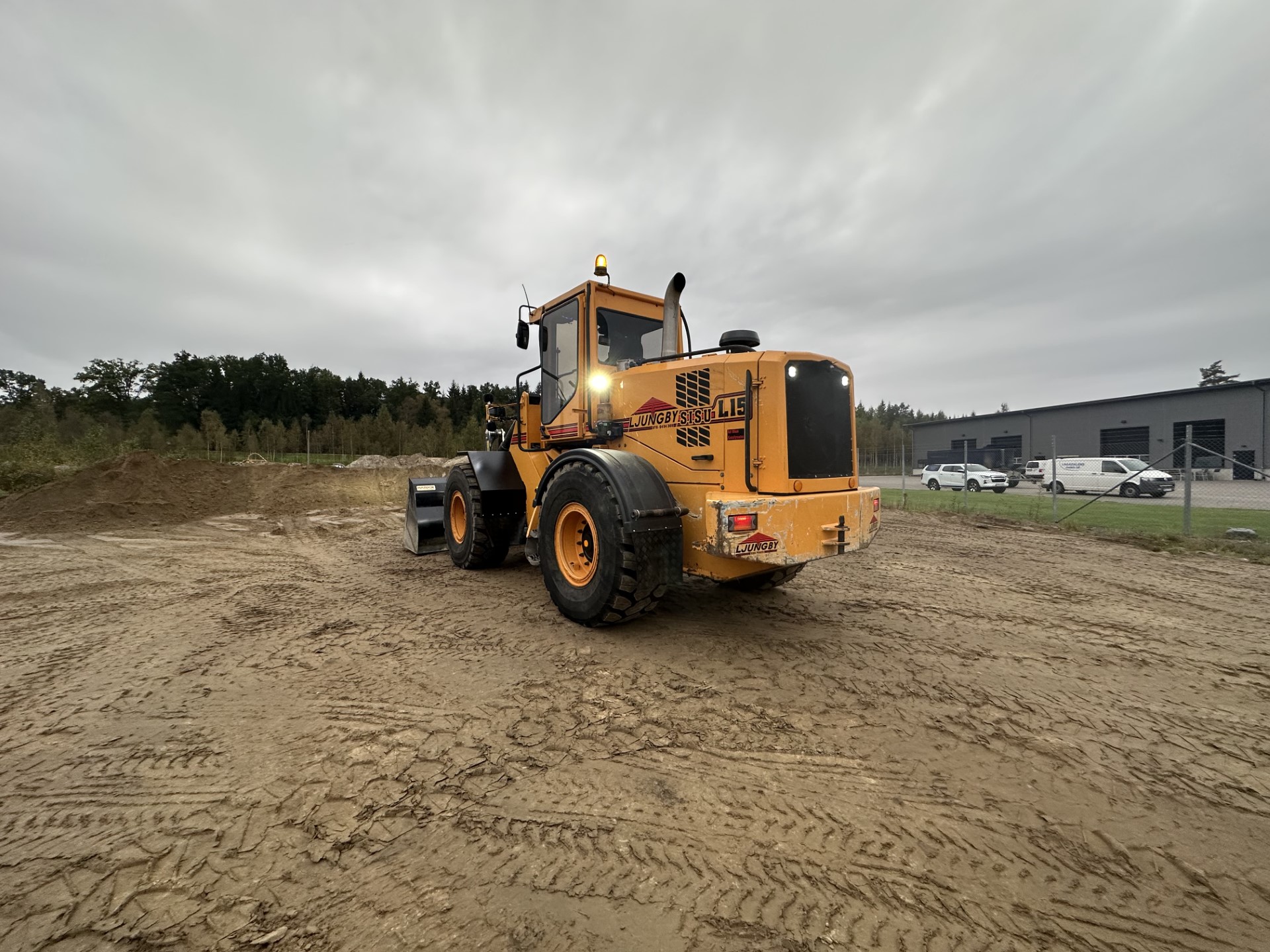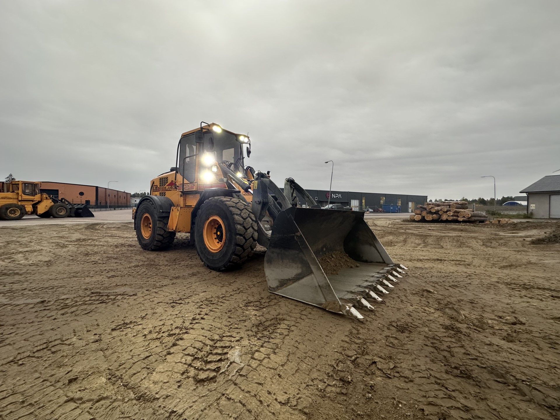 45-graders styrvinkel åt båda håll, vändradie som Volvo L70