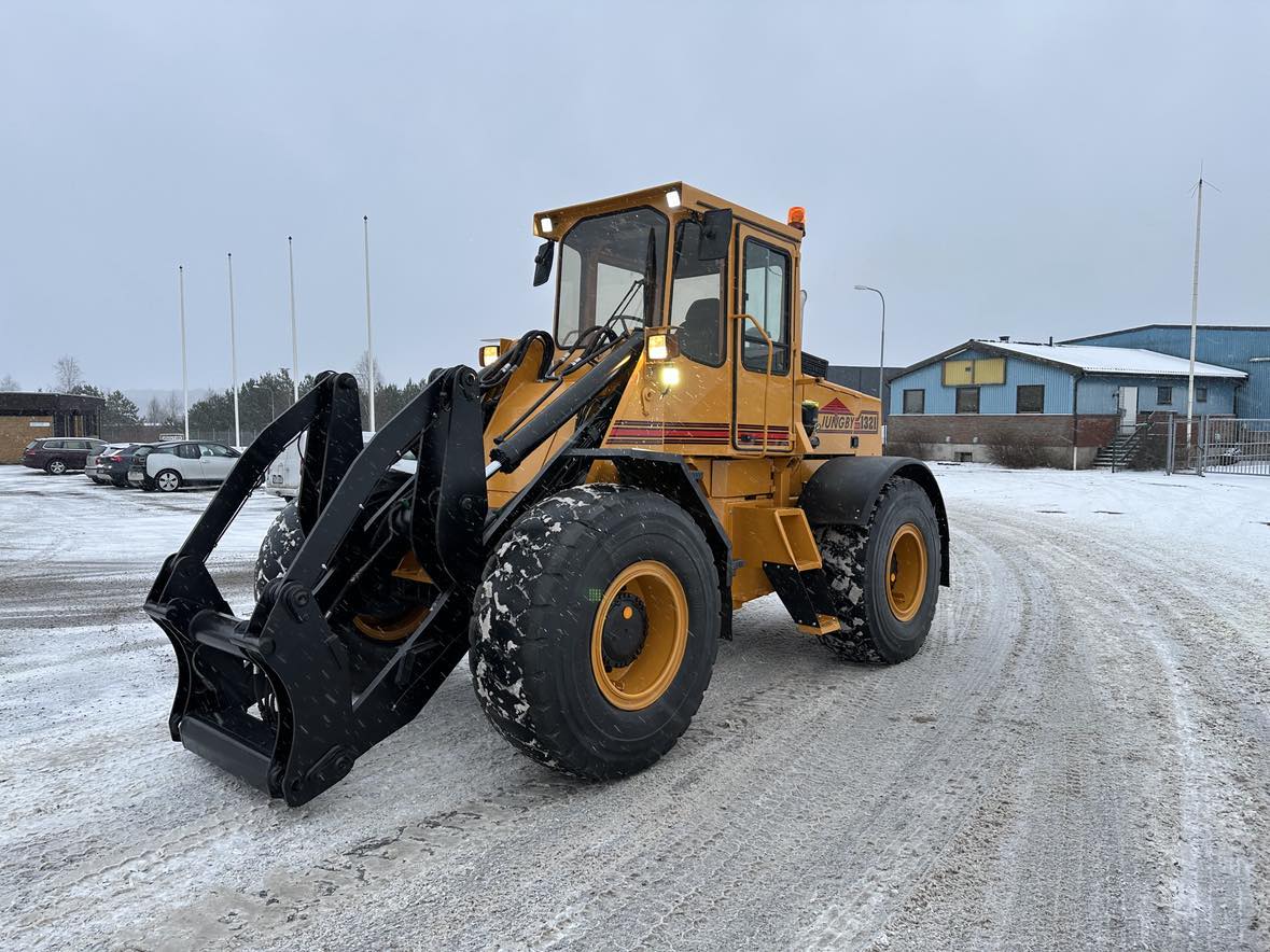 45-graders styrvinkel åt båda håll, vändradie som Volvo L50