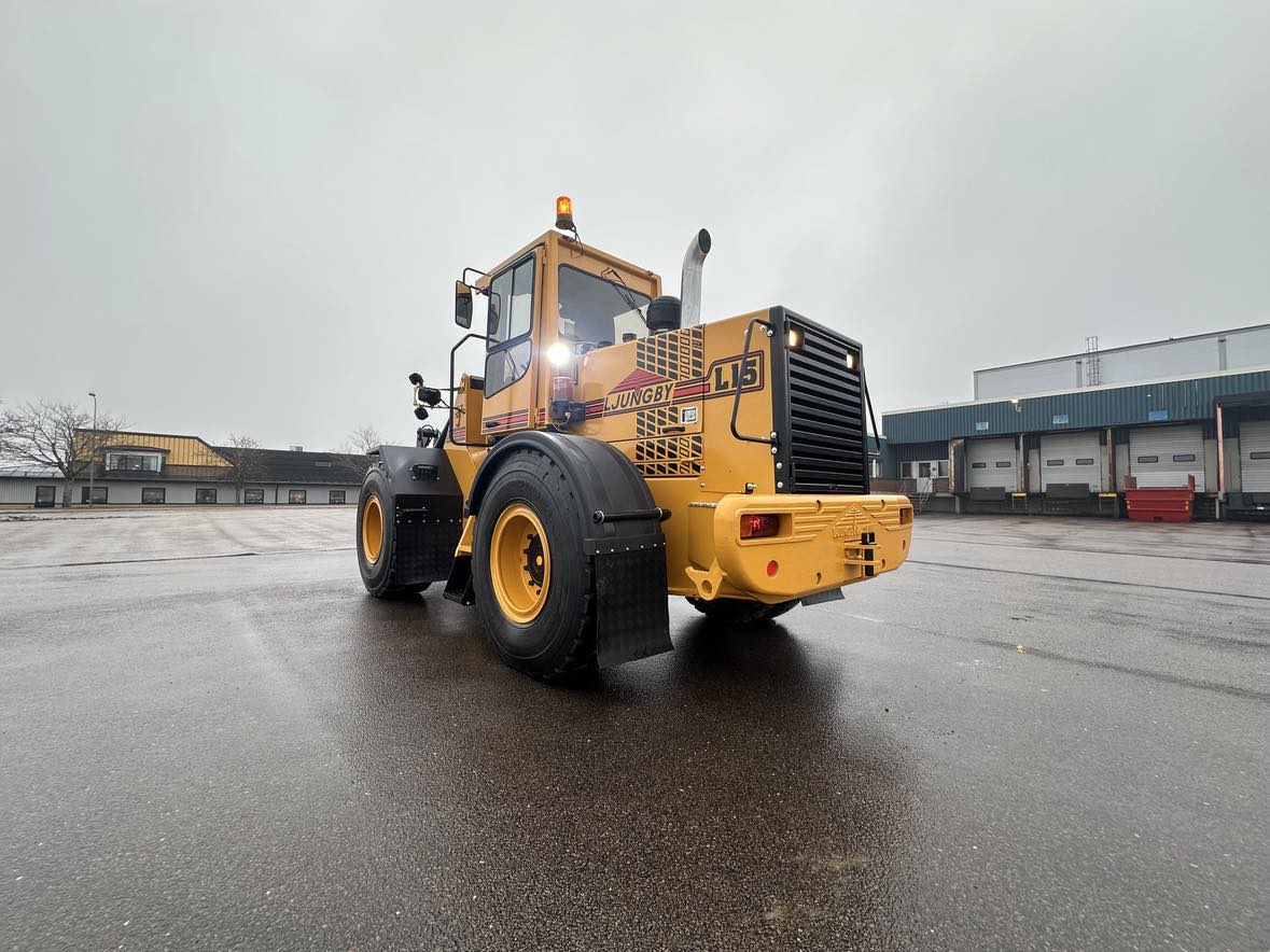 45-graders styrvinkel åt båda håll, vändradie som Volvo L70