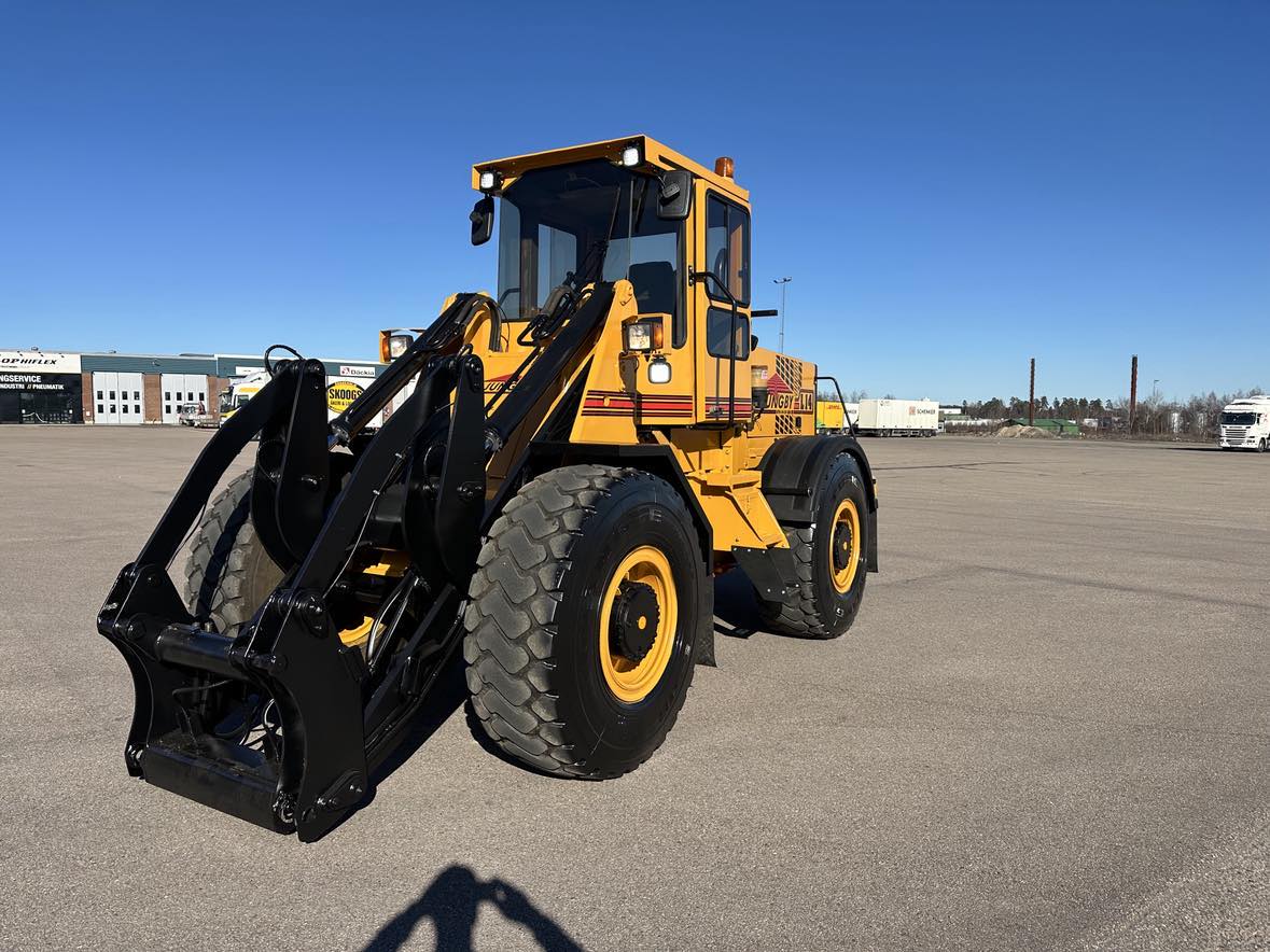45-graders styrvinkel åt båda håll, vändradie som Volvo L70