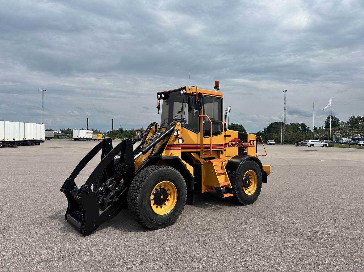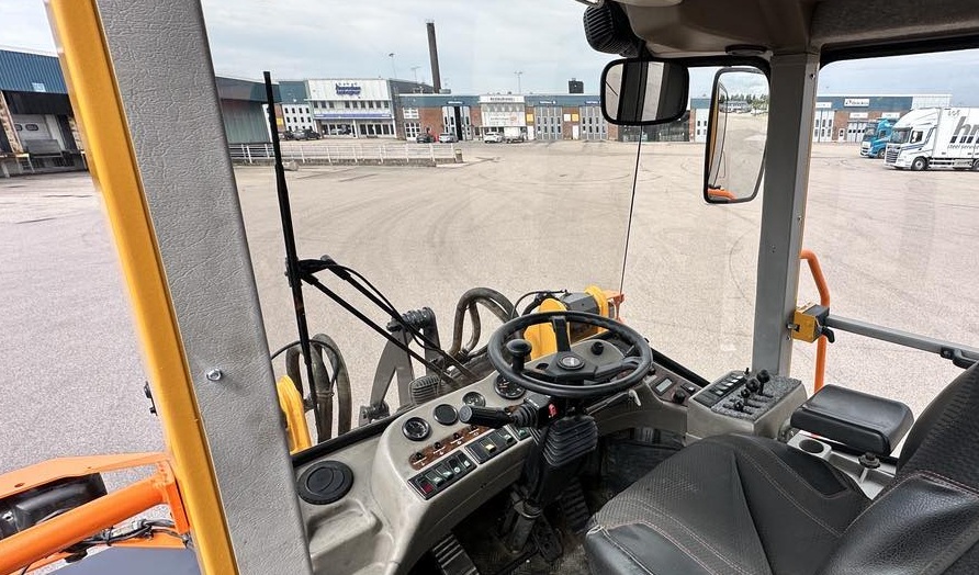 45-graders styrvinkel åt båda håll, vändradie som Volvo L50