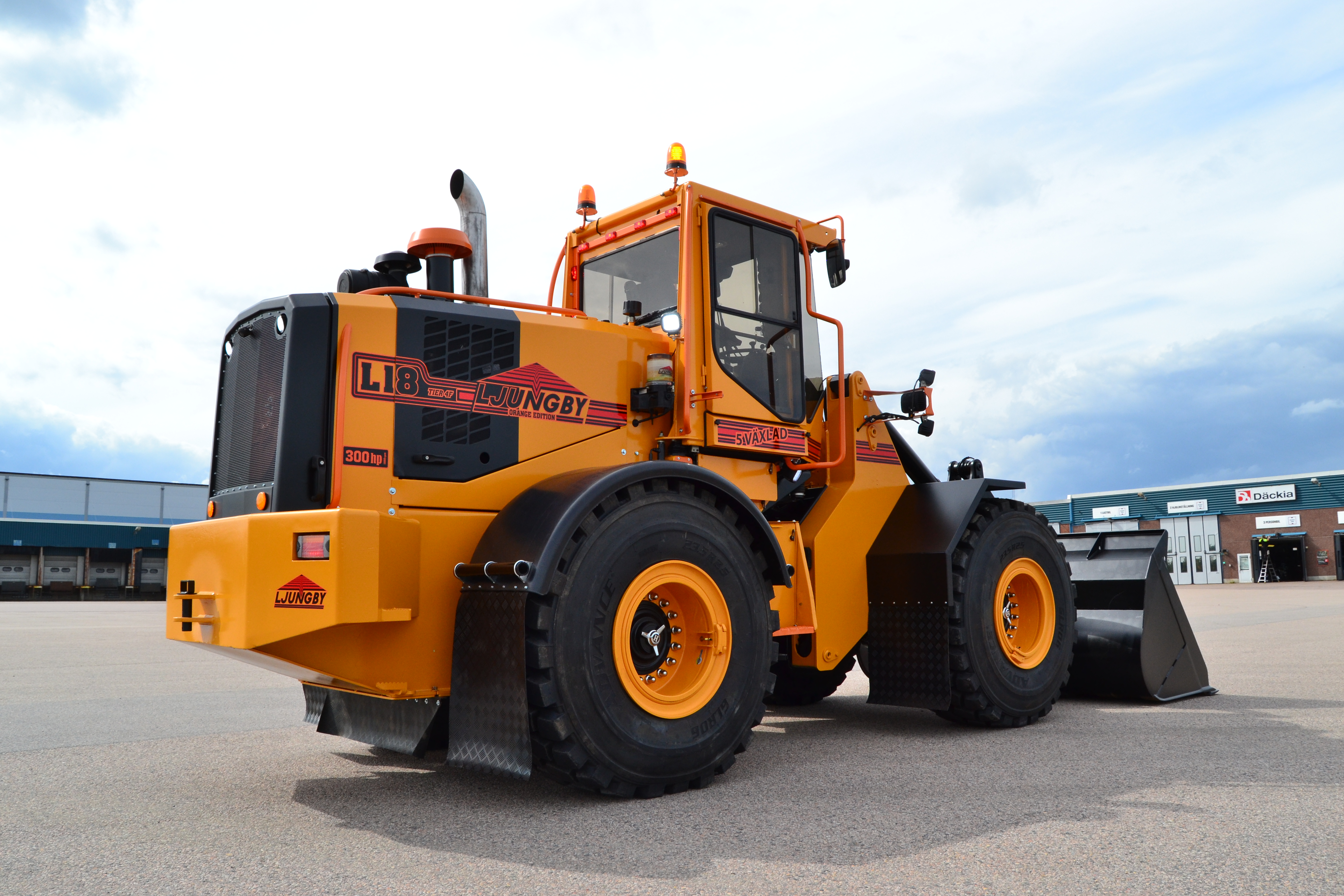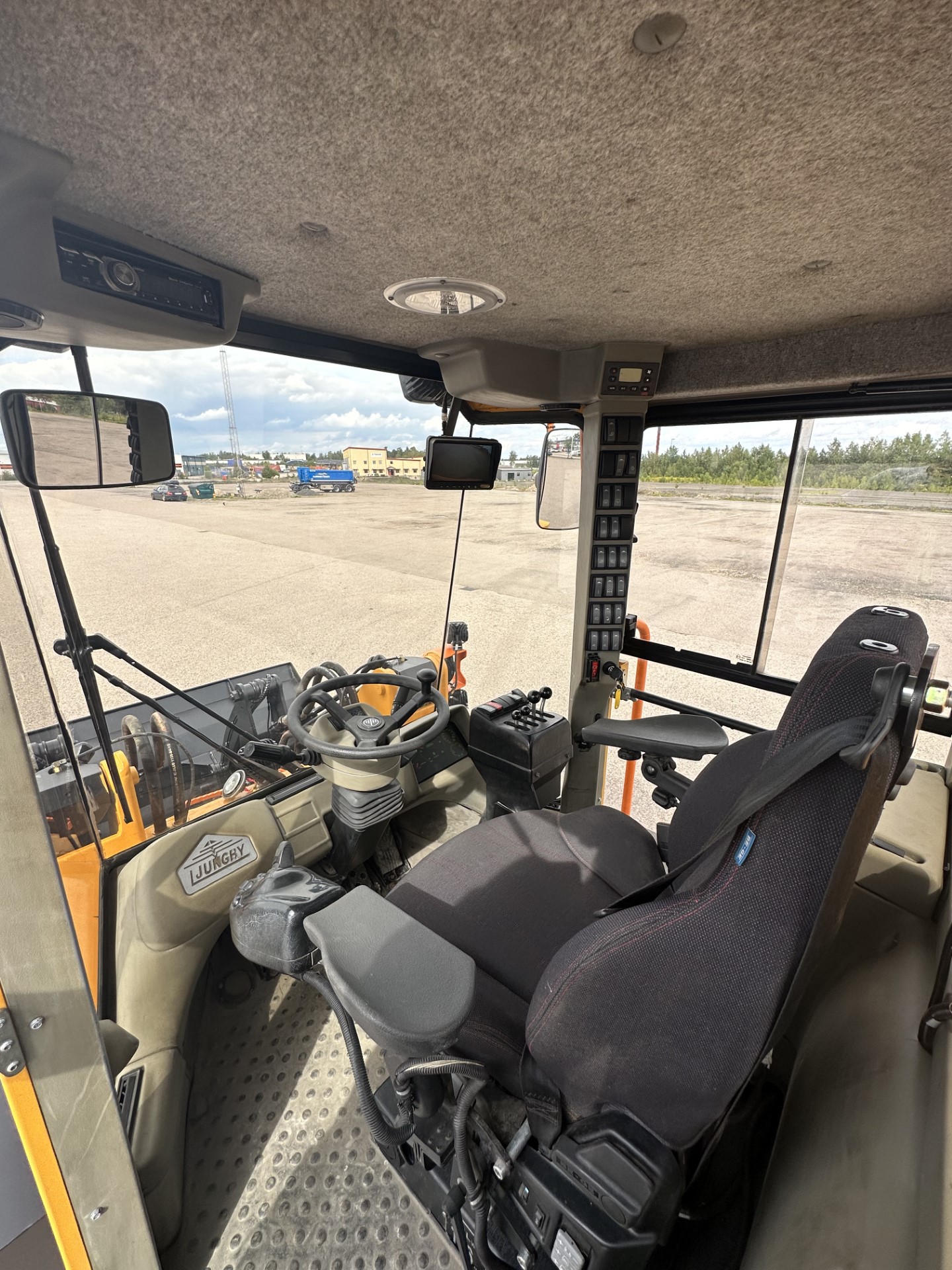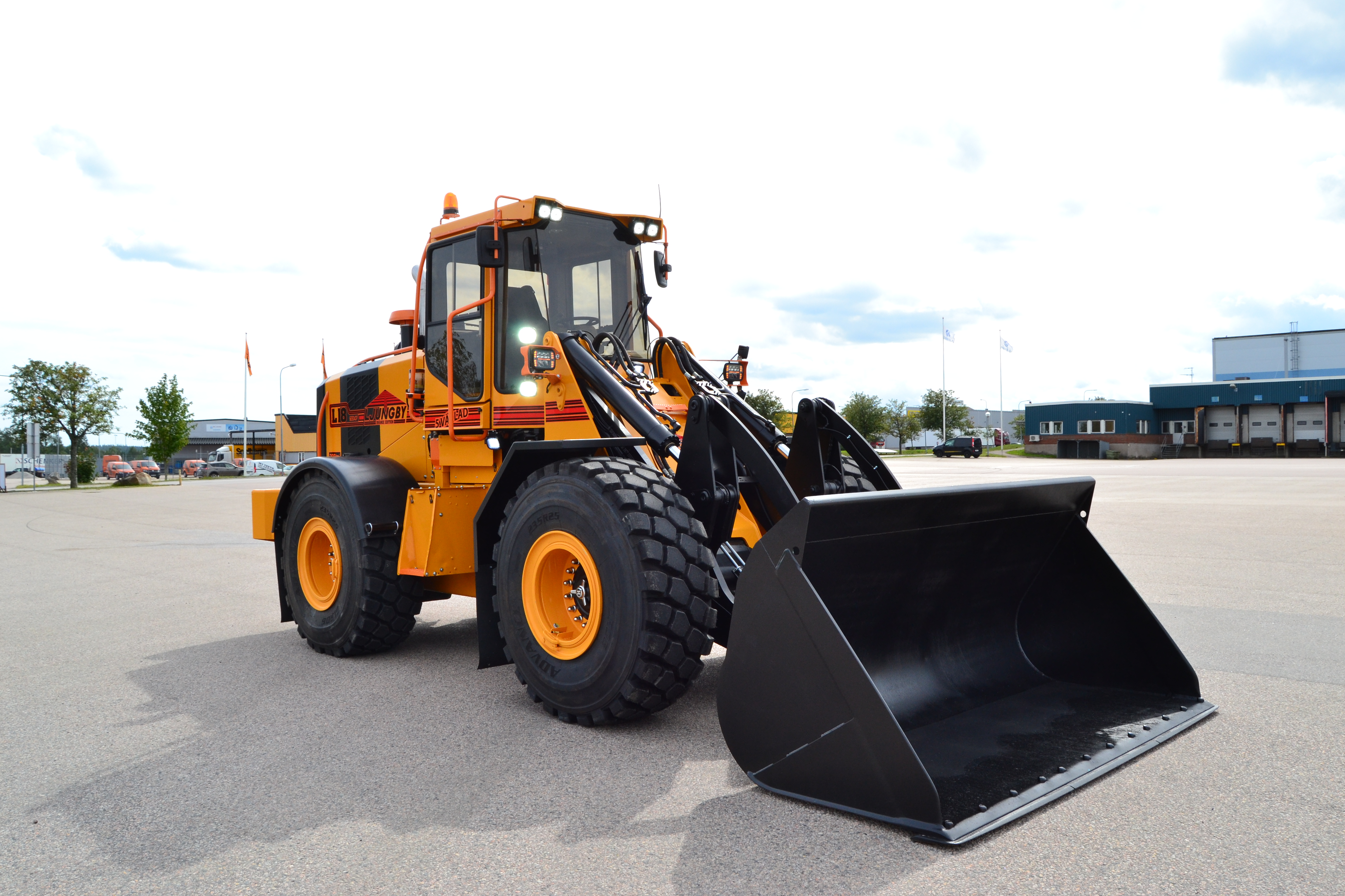 45-graders styrvinkel åt båda håll, vändradie som Volvo L90