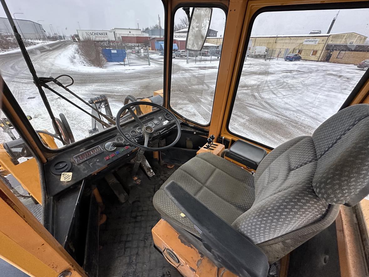 45-graders styrvinkel åt båda håll, vändradie som Volvo L50