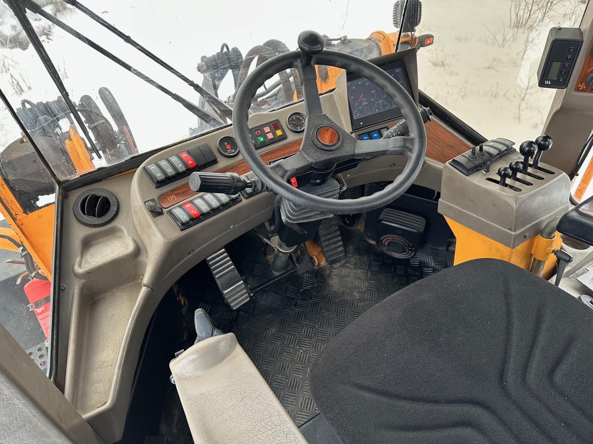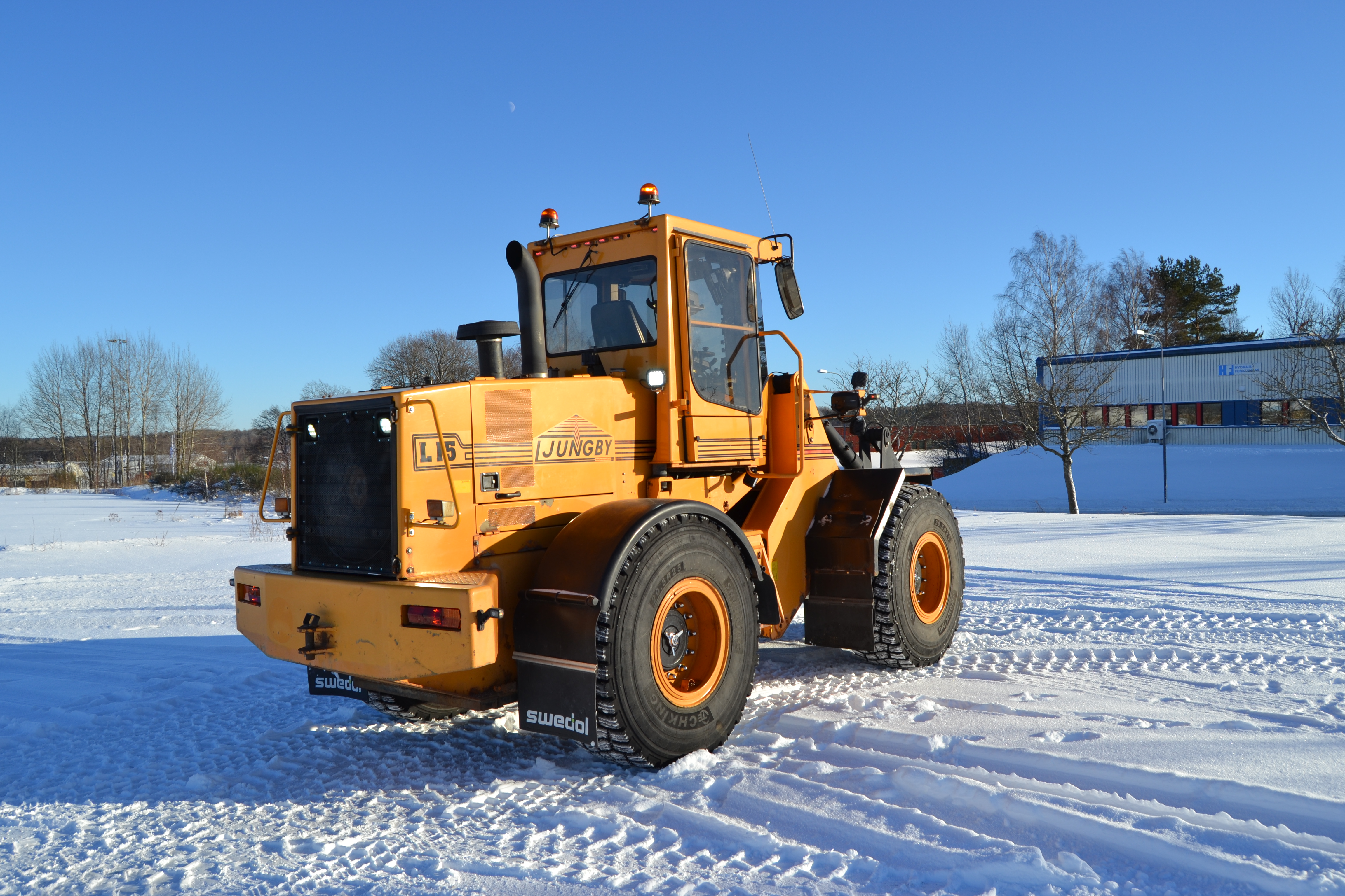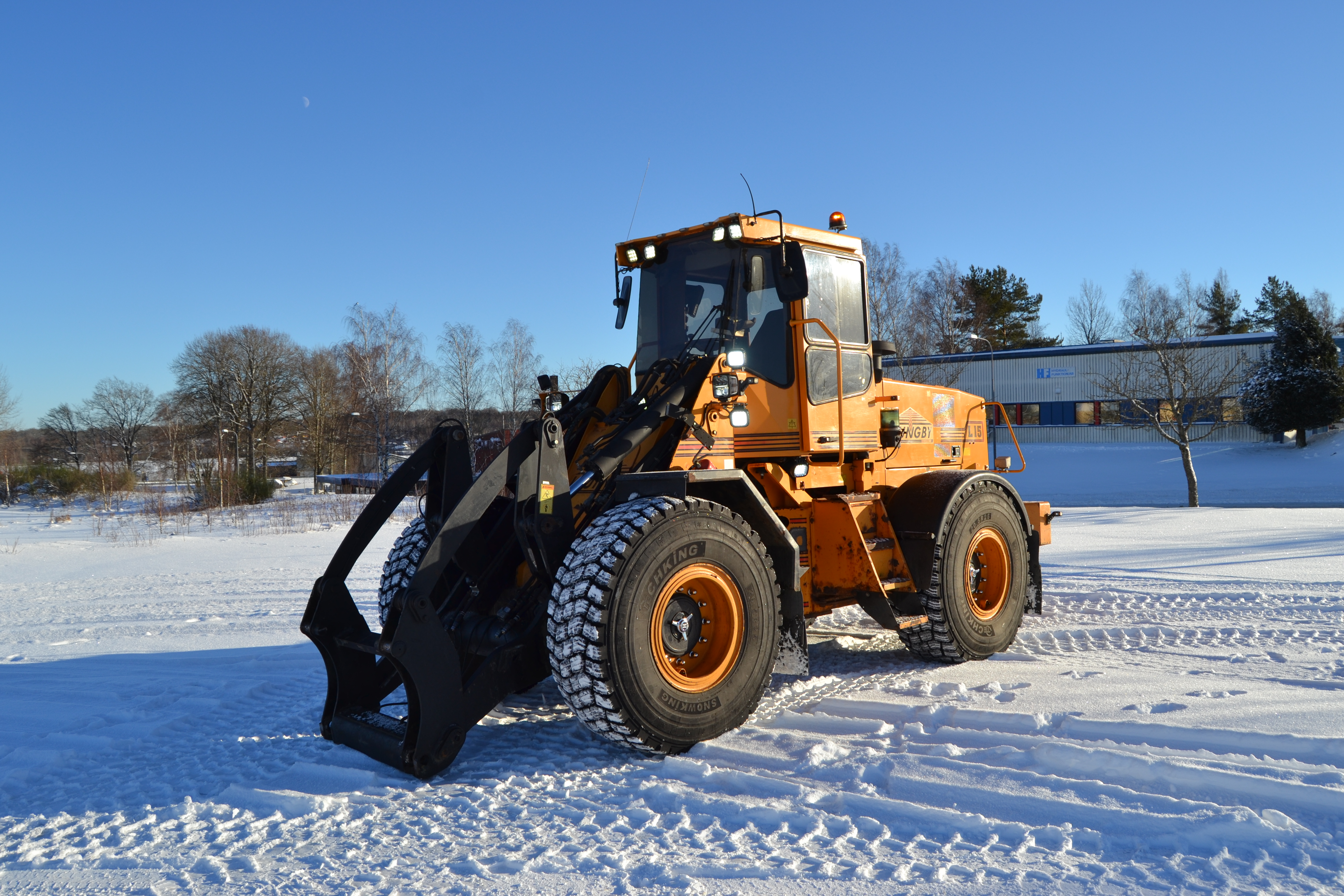 45-graders styrvinkel åt båda håll, vändradie som Volvo L70