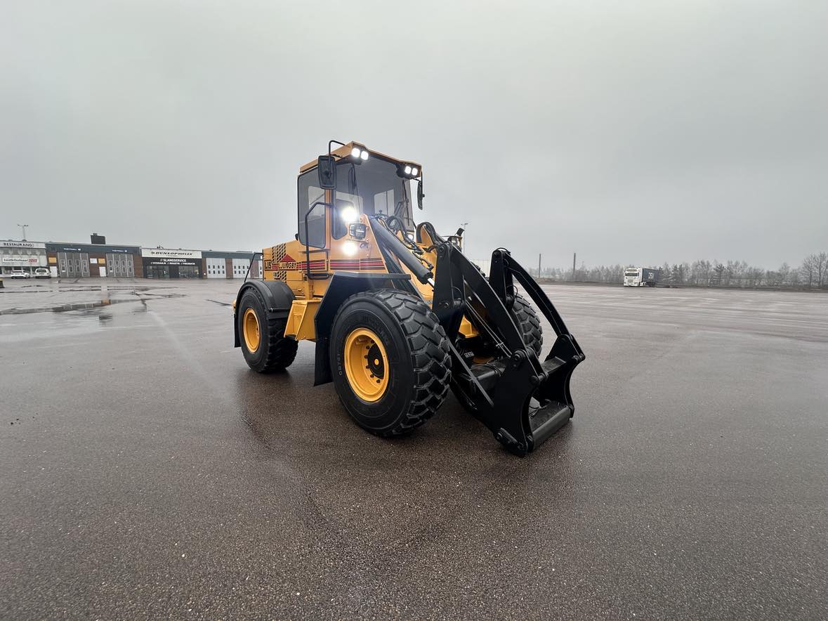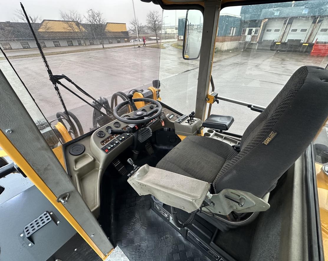 45-graders styrvinkel åt båda håll, vändradie som Volvo L70