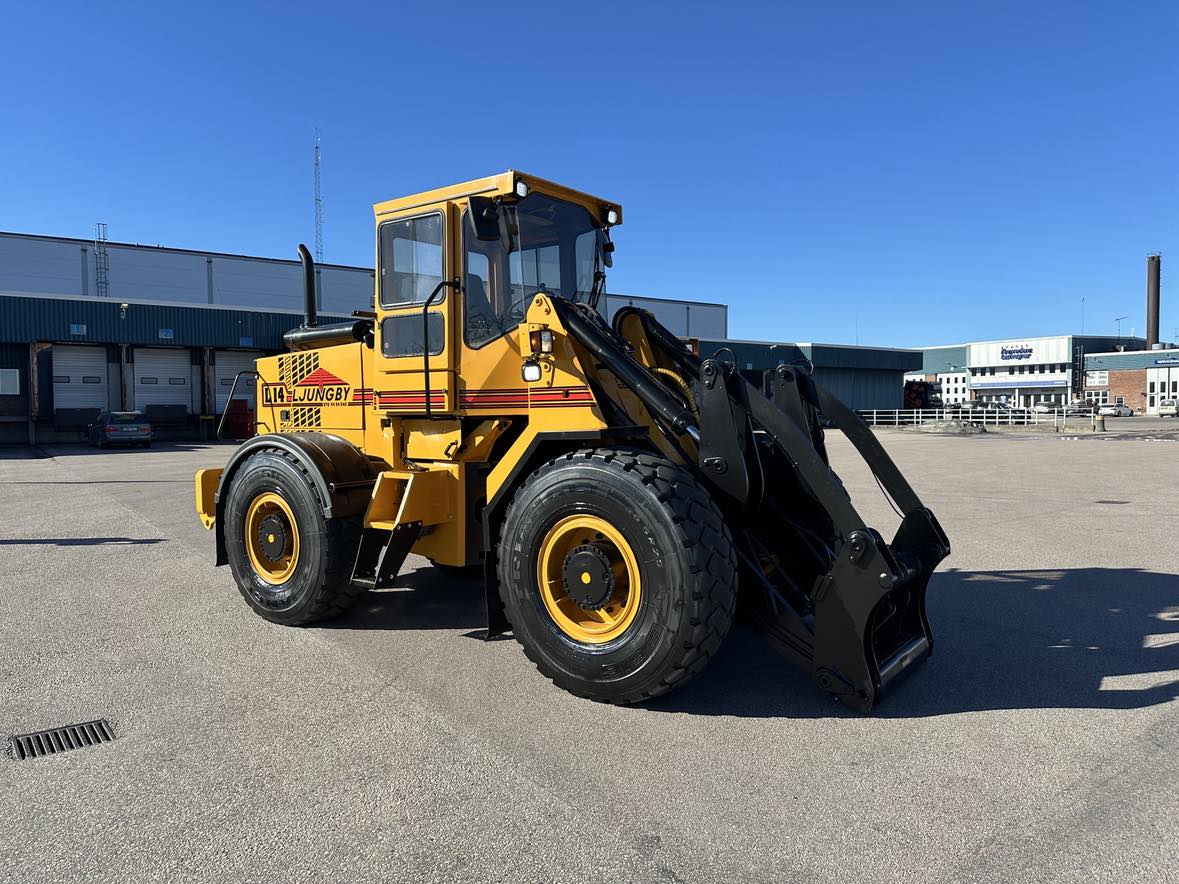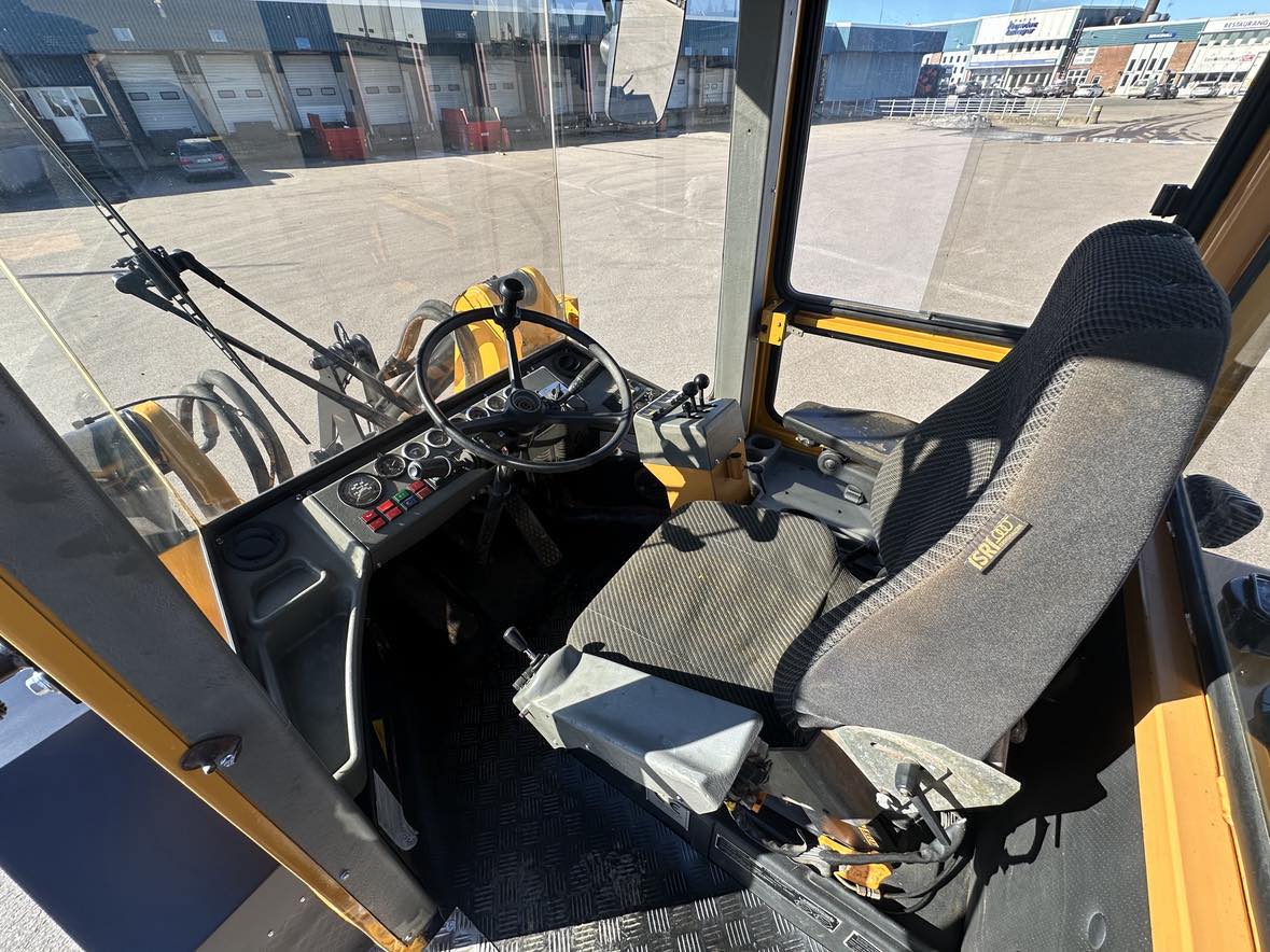 45-graders styrvinkel åt båda håll, vändradie som Volvo L70
